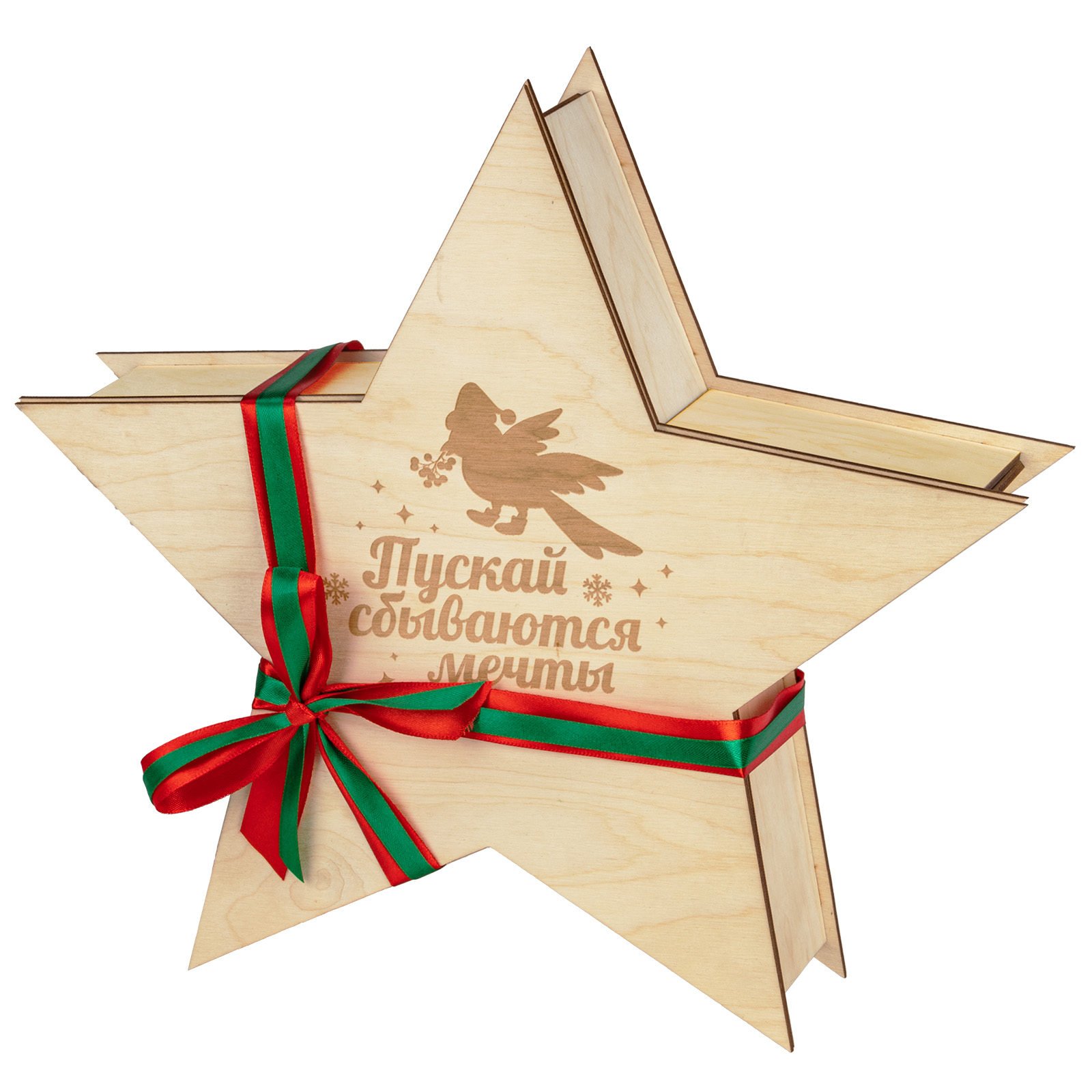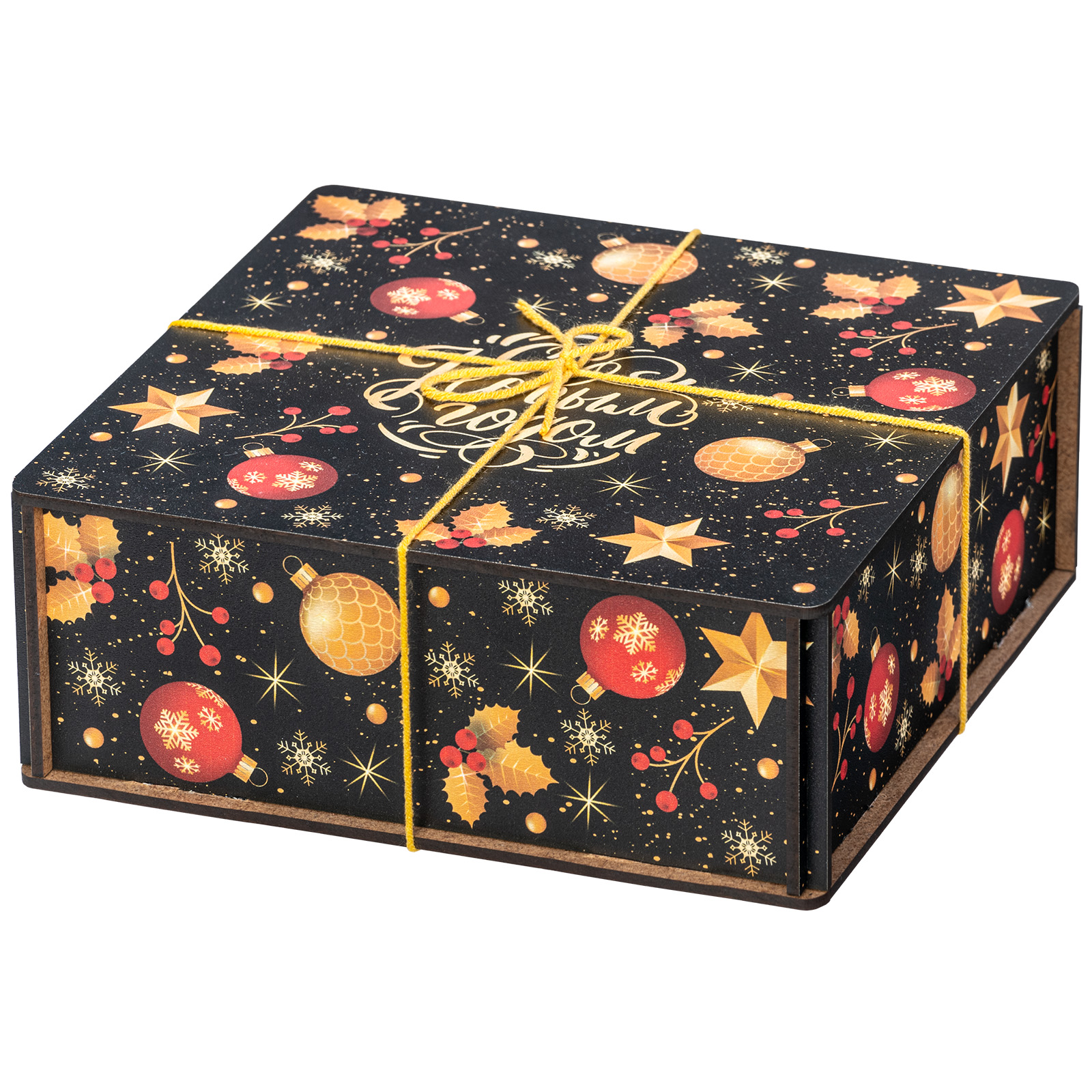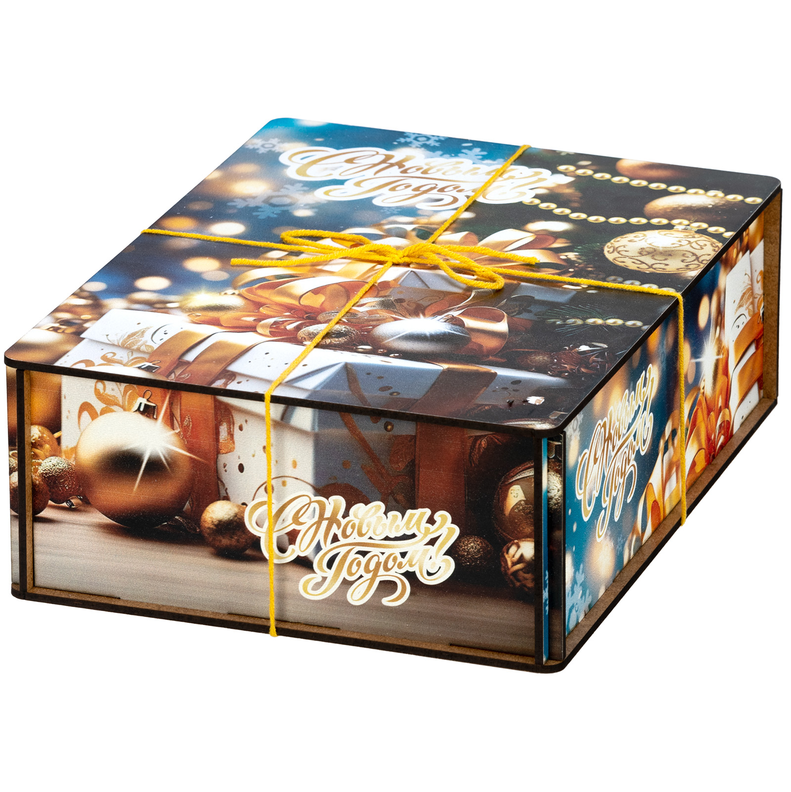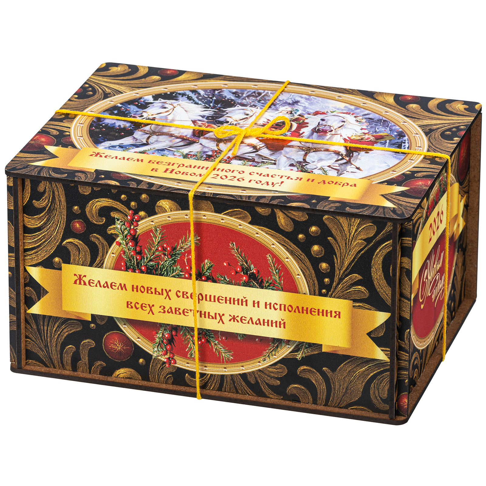 - Эксклюзивное оформление. Сладкий набор для взрослых может быть упакован в картонную или металлическую тару, но самым изящным вариантом является дерево. Экологичные коробки, сундуки, ларцы с резными узорами смотрятся презентабельно и понравятся как мужчинам, так и женщинам. Изображения Деда Мороза, символа 2026 года Лошади подчеркнут торжественность обстановки.